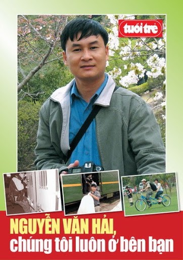 Tuoi Tre’s tribute to Nguyen Van Hai on a journal cover. Hai was one of two journalists jailed over PMU18’s investigative articles.
