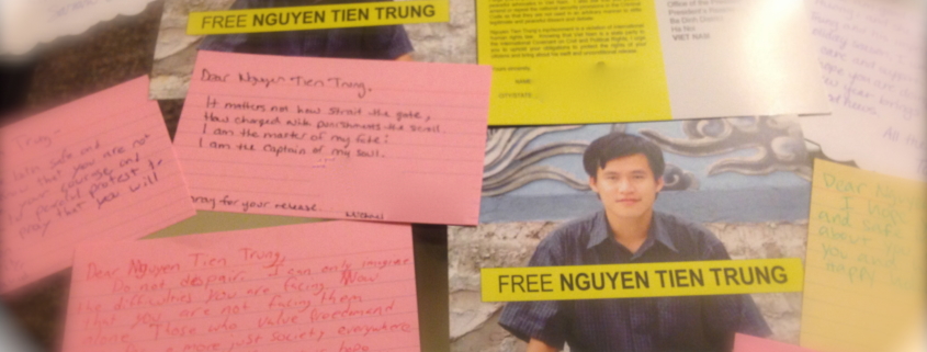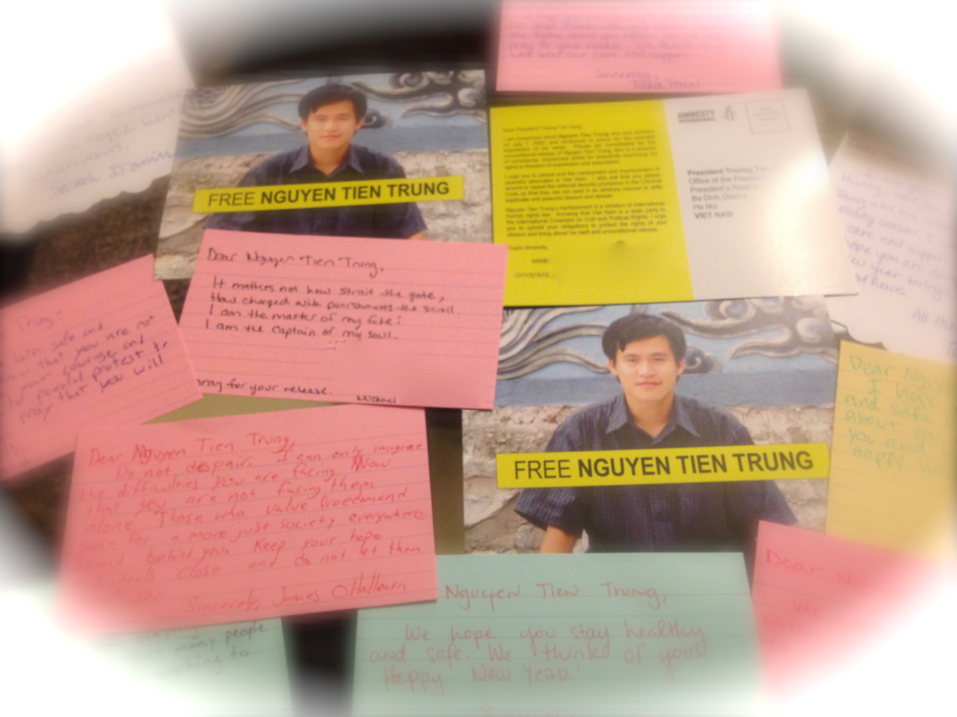 The 88 Project would like to thank the Indiana Journal of Law and Social Equality at the Indiana University Maurer School of Law for raising awareness about Vietnamese prisoners of conscience Tran Huynh Duy Thuc and Nguyen Tien Trung, who are serving 16 and seven-year sentences, respectively. The group signed cards courtesy of Amnesty International that detail a message about the activists and their unjust imprisonments. These cards will be sent to the President of Vietnam. The group also wrote cards of support to send to the imprisoned activists and their families in order to show their solidarity.