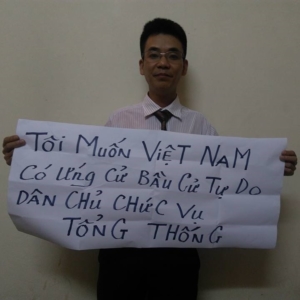 Huynh Tai and his father Huynh Tien were tried in Binh Dinh Province on March 14, charged with “attempting to overthrow the government.” Tai is accused of joining the overseas organization “Provisional National Government of Vietnam” and participating in an election for its leaders via email. He allegedly recruited others, including his father, to join him. Huynh Tai received a six-year prison sentence; Huynh Tien received a two-year sentence. It’s not known whether either one will appeal.