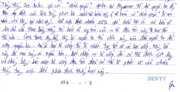 Đây cũng có thể là nguyên cớ để Mỹ có thể dàn trận mạnh mẽ trên khắp Biển Đông cùng với sự hỗ trợ của tứ giác kim cương và EU, Anh. Một tuần trước VTV1 có tin chạy là Tổng thống Joe Biden yêu cầu “chính quyền” quân sự Myanmar từ bỏ quyền lực đồng thời áp đặt các lệnh trừng phạt lên cánh võ biền này (võ biền và “chính quyền” là con viết, VTV không gọi như vậy). Đã mặc định chiếm 25% ghế Quốc hội rồi mà bầu cử dân chủ vẫn thua liểng xiểng thì biết rõ uy tín của những kẻ độc tài này tệ hại đến thế nào. Cạnh tranh công bằng không lại người ta thì chỉa súng vào đầu người ta để cướp quyền lực. Đó là loại kẻ cướp tồi tệ nhất trong tất cả các loại cướp. Nhưng lần này để xem súng ai ngầu hơn. Bất chấp những kẻ cướp đó có thể được giật dây và chống lưng bởi một kẻ cướp độc tài đầu sỏ thì lẽ phải sẽ vẫn chiến thắng trong cuộc đấu phân định thắng bại này.
