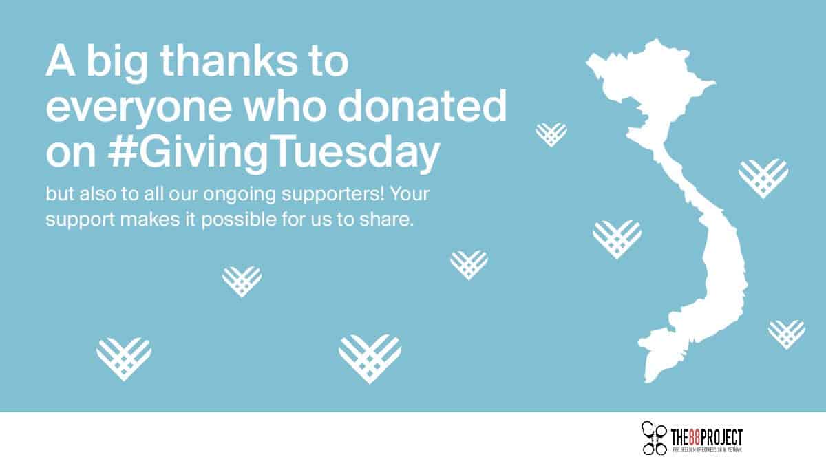 A big thanks to everyone who donated on Giving Tuesday, but also to all of our ongoing supporters! Your support makes it possible for us to share information about activists at risk and political prisoners and report on their arrests, trials, health, motivations for activism, and more. You can donate anytime on our website to support projects like our newsletter, Vietnam Political Prisoner Database, and interviews with activists.